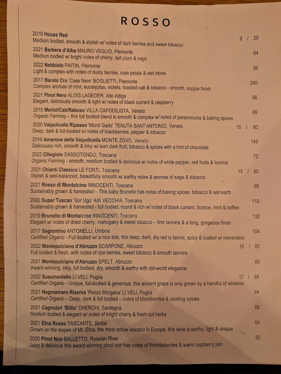 - Wines: The wine selection is impressive, with both white and red options catering to connoisseurs and casual drinkers alike.
